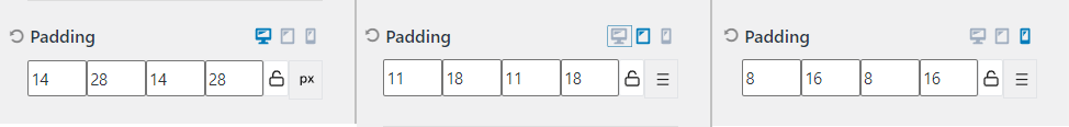 Если установить padding в кастомайзере, то он будет влиять только на размер М, выберите как вам удобнее